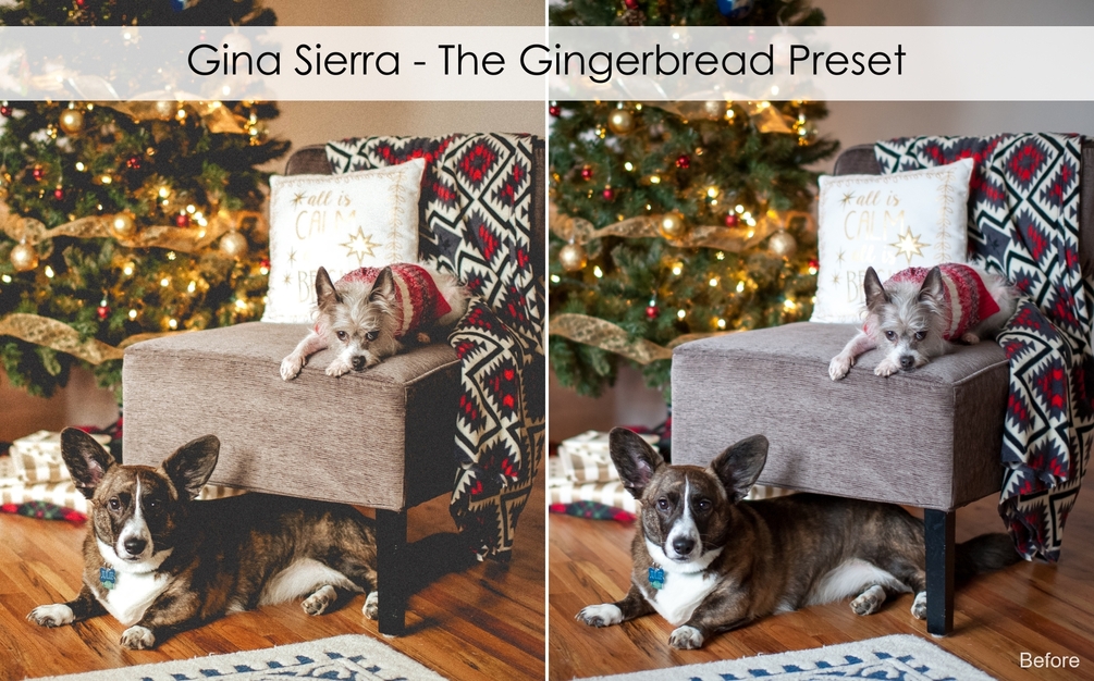 The Gingerbread Preset is one of my personal favorites! Featuring golden hues, a matte finish and high grain, this preset will give you the warm and fuzzies! Use this edit on that atmospheric Instagram photo of the fire going in your fireplace, with your tree all lit up... Try it on your travel photos, too! It's a versatile preset that will work all year round at any time of day.