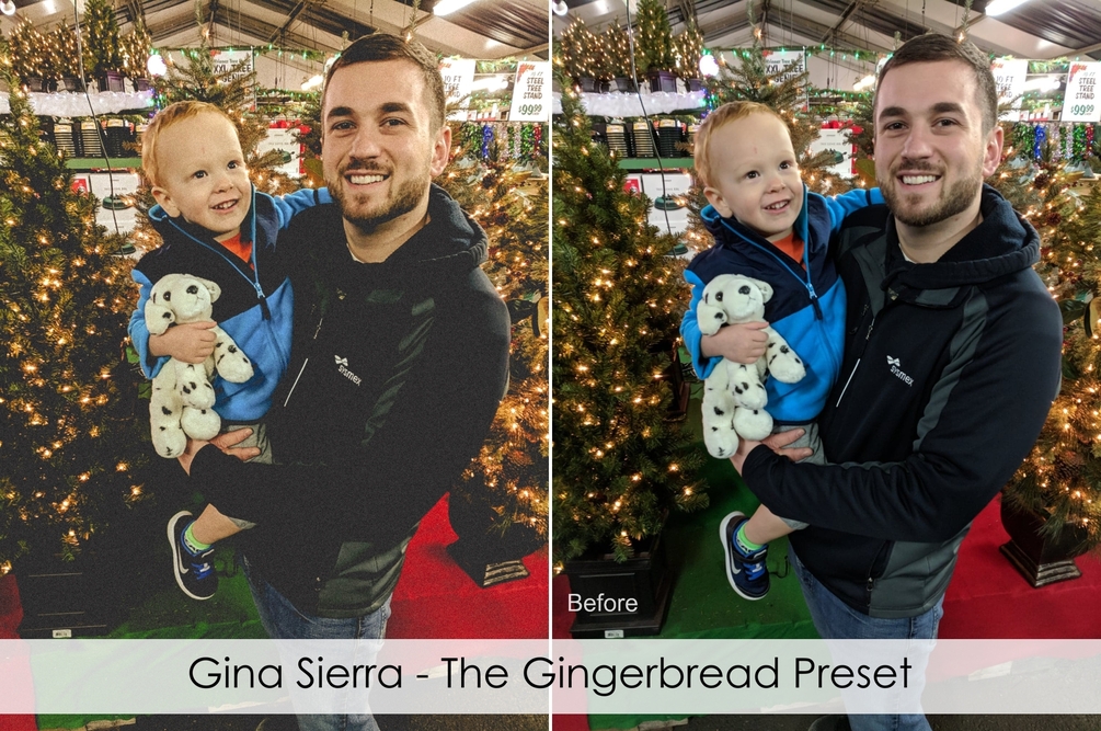 The Gingerbread Preset is one of my personal favorites! Featuring golden hues, a matte finish and high grain, this preset will give you the warm and fuzzies! Use this edit on that atmospheric Instagram photo of the fire going in your fireplace, with your tree all lit up... Try it on your travel photos, too! It's a versatile preset that will work all year round at any time of day.